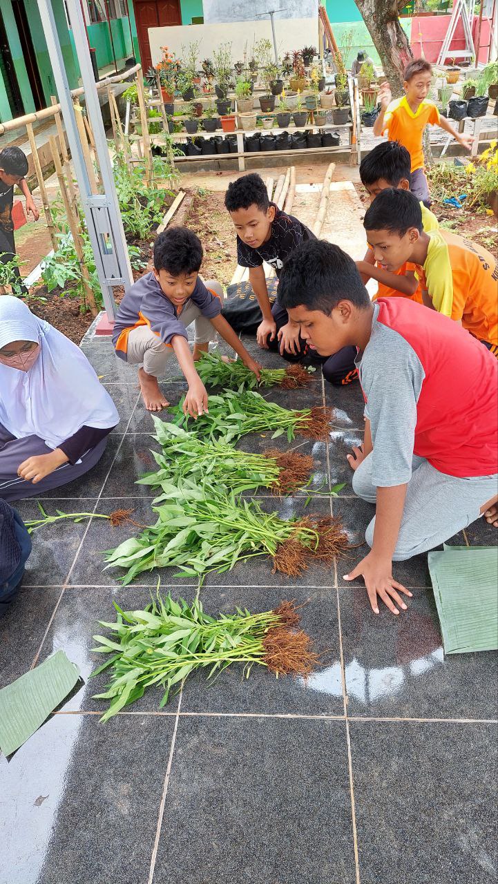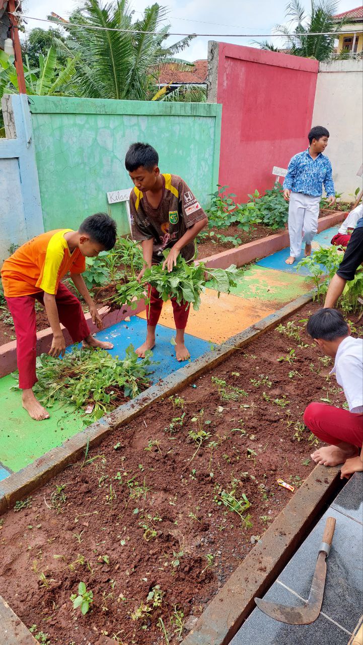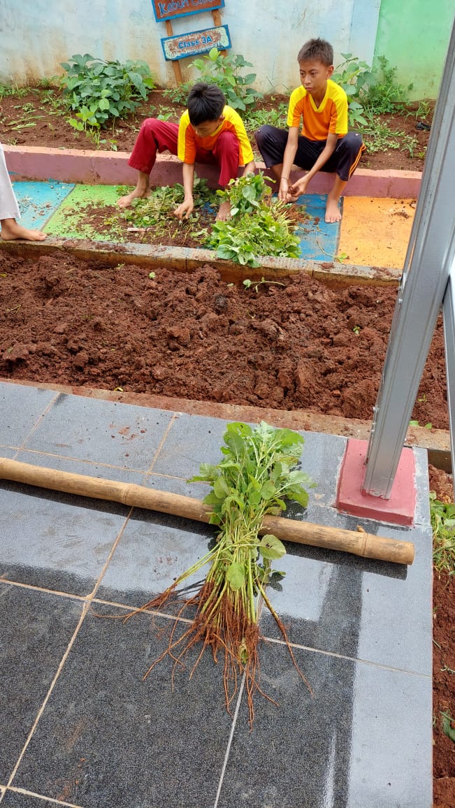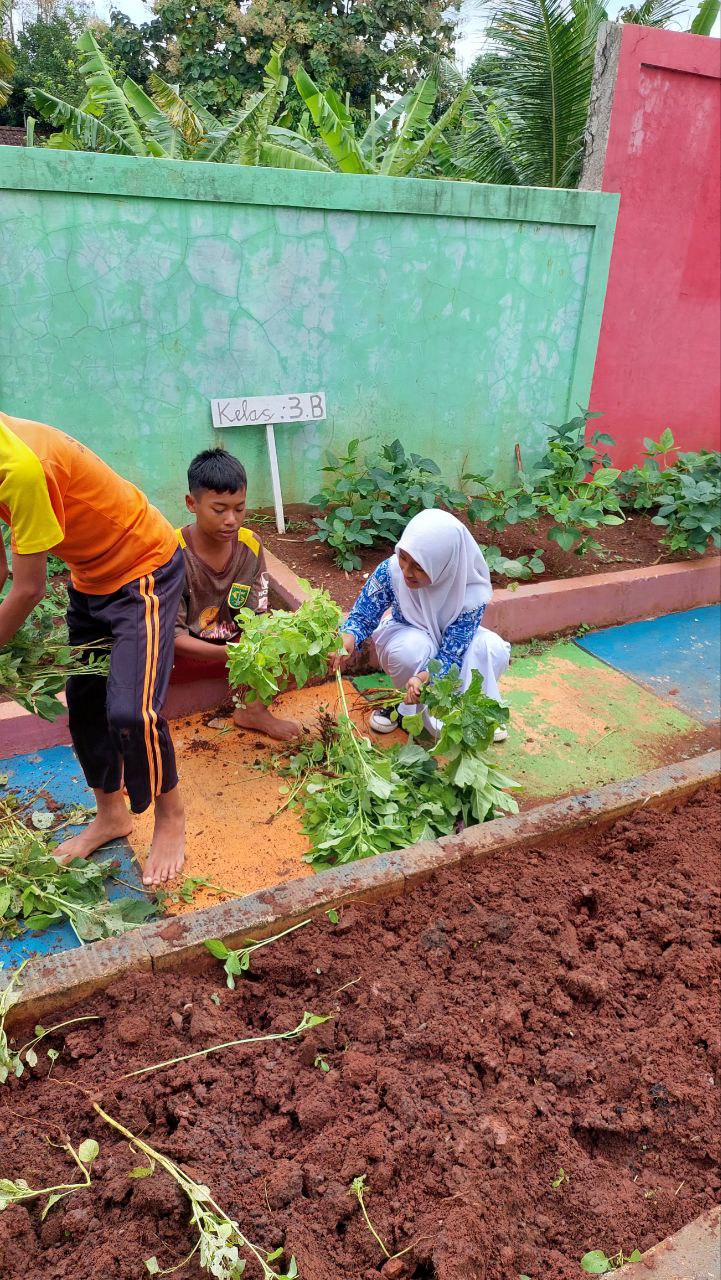 Kegiatan berkala di SDN Wates 01 yaitu panen sayur di kebun Edukasi SDN Wates 01