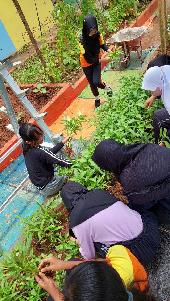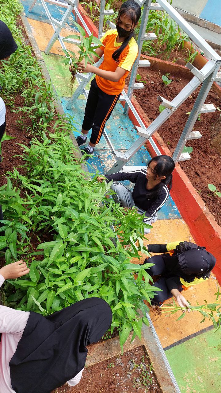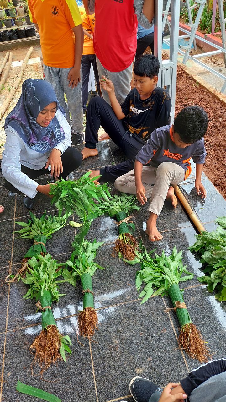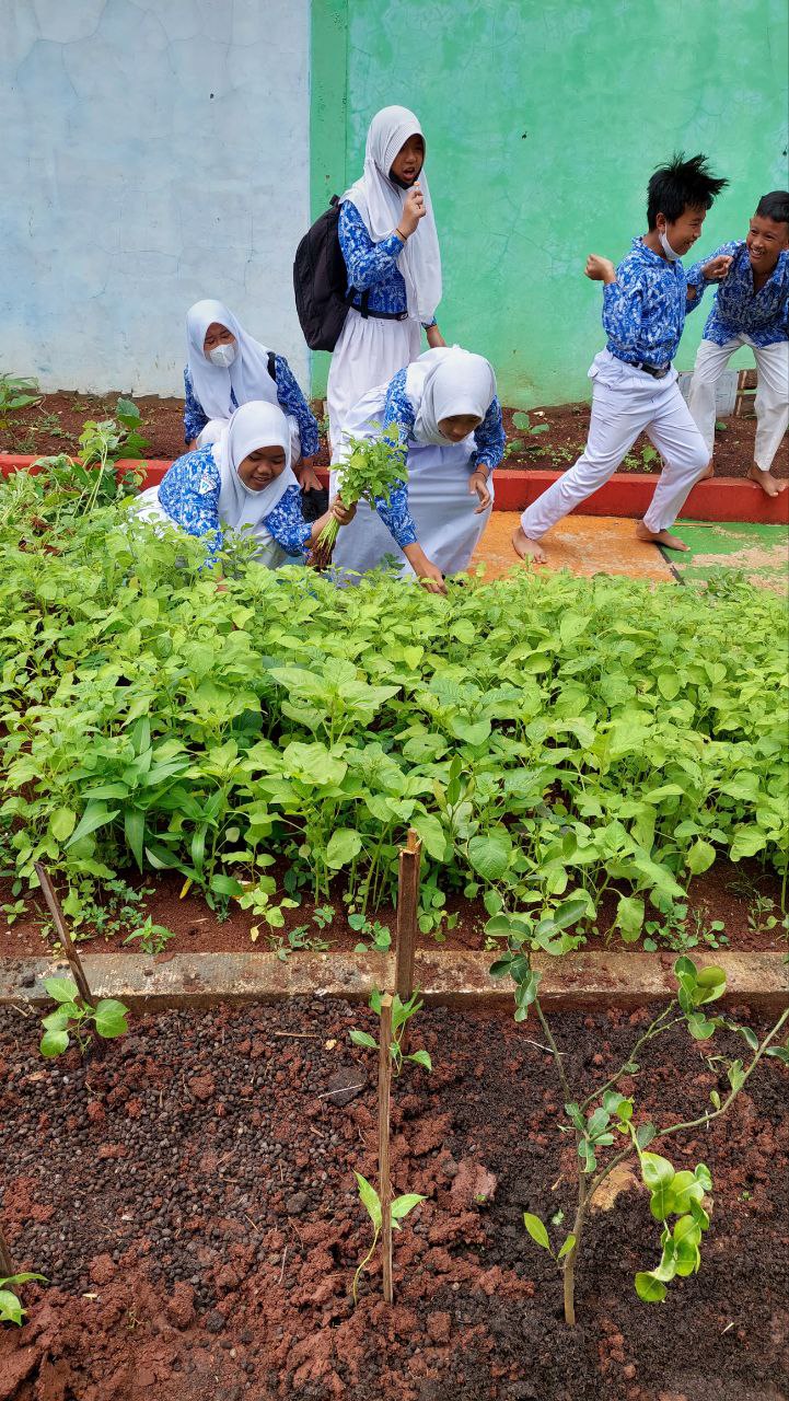 Kegiatan berkala di SDN Wates 01 yaitu panen sayur di kebun Edukasi SDN Wates 01